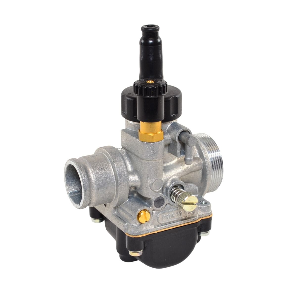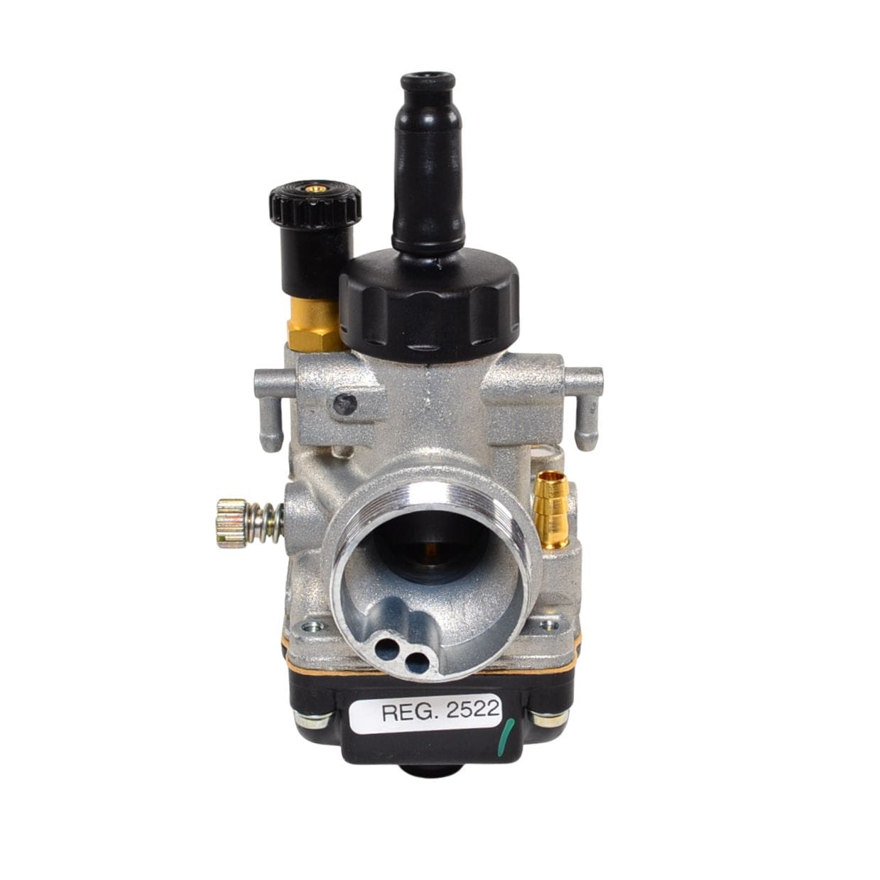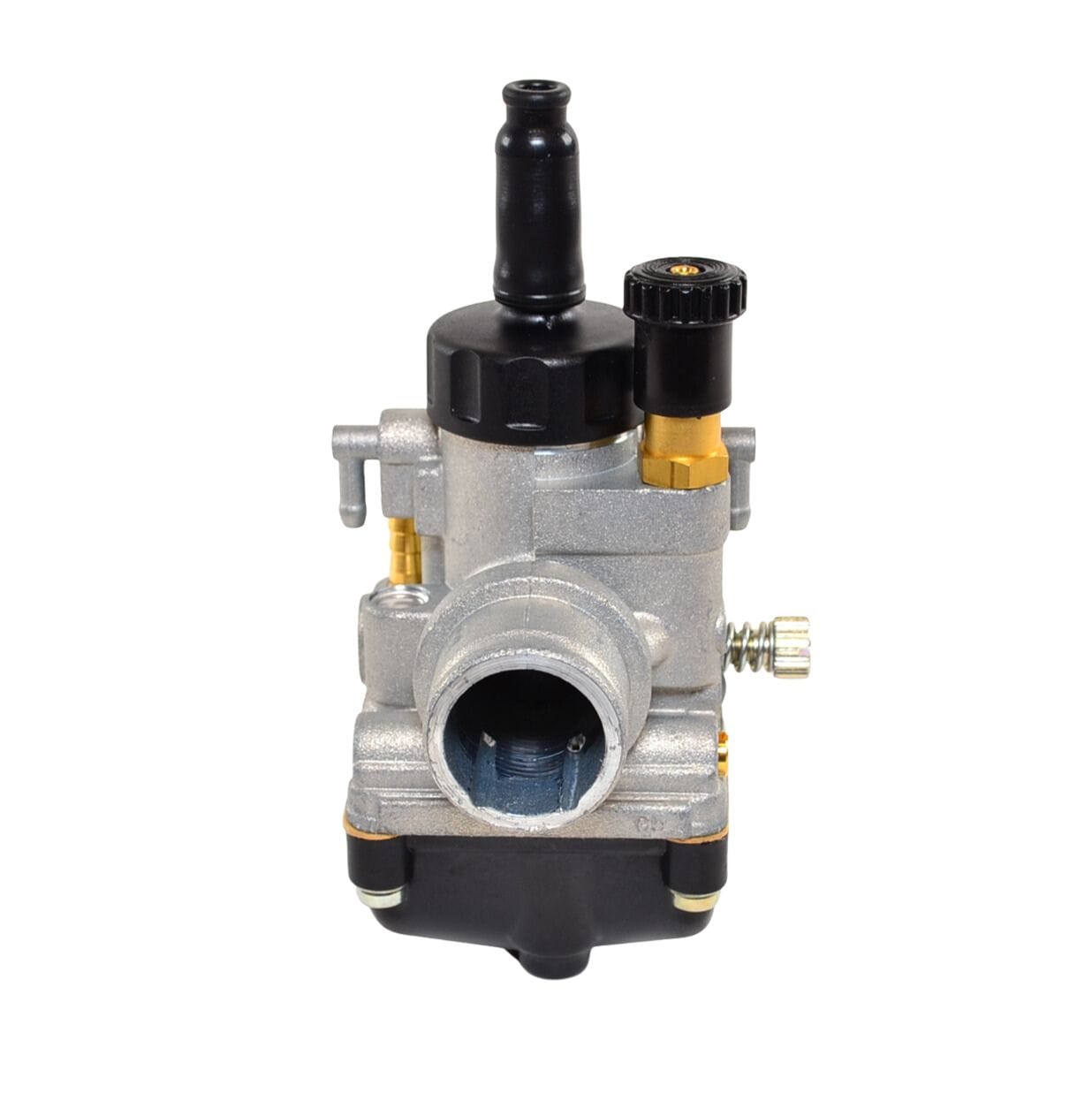 Alkuperäinen Dell’orto PHBG 19BS 2T kaasutin. Kaasutin on “kisaversio”, sillä luistikansi on käsin kierrettävää mallia, jolloin sen irrottamiseen tai asentamiseen ei tarvita työkaluja. Kaasuttimessa ei ole myöskään ylimääräisiä alipaine tai tuorevoitelu nippoja.