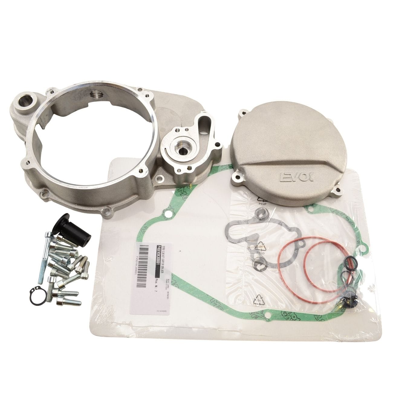 EVOK Performance esittelee ylpeänä nopean järjestelmän, joka auttaa ja yksinkertaistaa Minarelli AM6 -moottoreiden kytkimen tarkastusta tai vaihtoa. Et tarvitse enää laskea vaihteistoöljyjä tai jäähdytysnestettä pois kytkimen perussäätöä tai kytkinlevyjen vaihtoa varten. Riittää kun vain irrotat kytkimen kannen, aivan kuten motocross pyörissä. Kaksiosainen kytkinkoppa koostuu niin sanotusta kytkinlohkosta ja erillisestä kannesta.