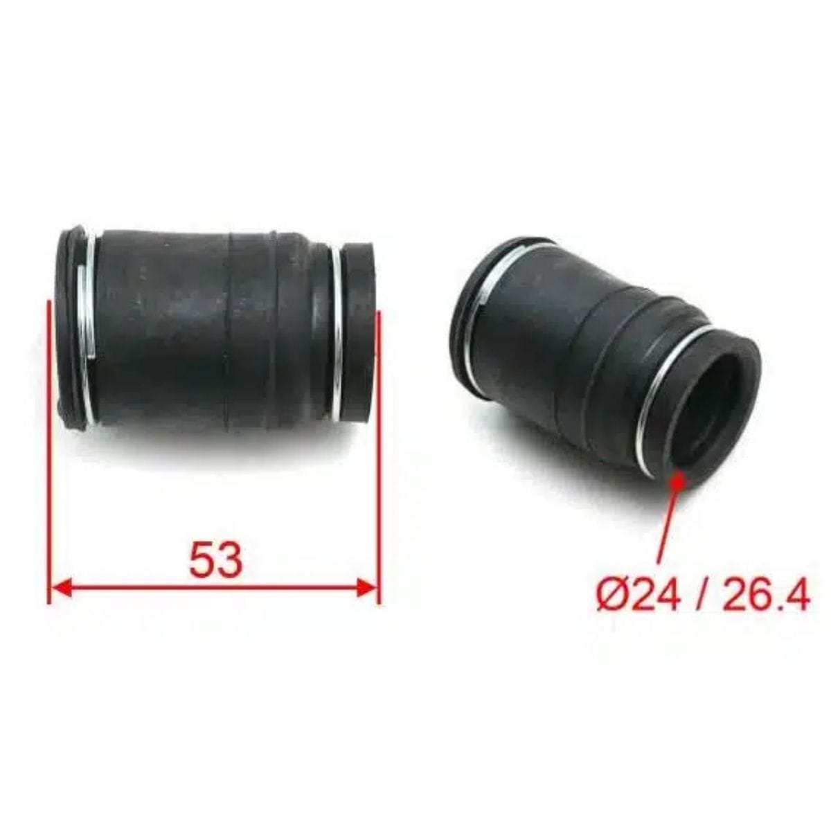 Tiivistekumi / välipillinkumi / kumiholkki / liitoskumi, pakoputken paisarin ja välipillin liittämiseen. Kumin toisen pään sisähalkaisija 24mm ja toisen 26mm. Pituus 53mm.