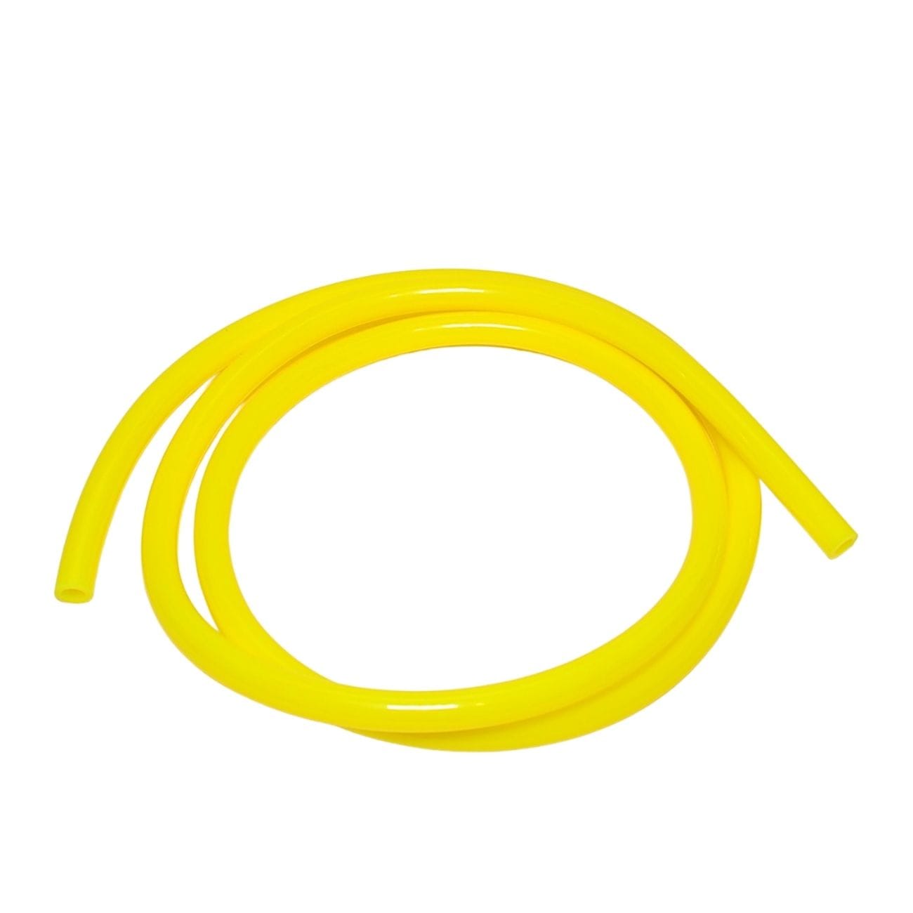 Keltainen bensaletku. Letkun sisähalkaisija on noin 5mm, ulkohalkaisija 8mm ja pituus 1 metri.