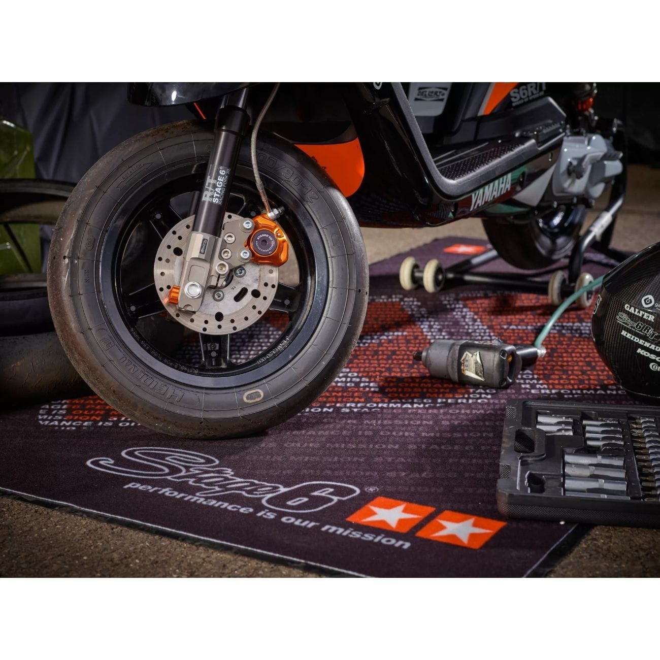 Stage6 MKII -matto on käytännöllinen ja näyttävä valinta pyörän alle niin harrastajille, kilpakuskeille kuin mekaanikoillekin. Matto soveltuu erinomaisesti autotalliin, varikolle, näyttelyihin tai vaikka omaan huoneeseen koristeeksi tai asennusalustaksi.