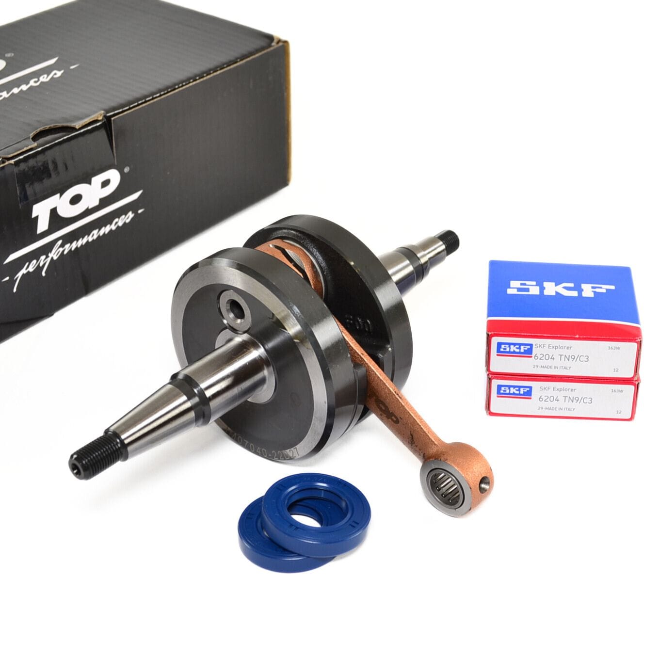 Laadukas Top Performance kampiakseli Derbin vanhanmallin moottoriin EBE050 ja EBS050 (Euro 1 ja 2). Kampiakselia voidaan käyttää 50-70cc sylinterin kanssa.